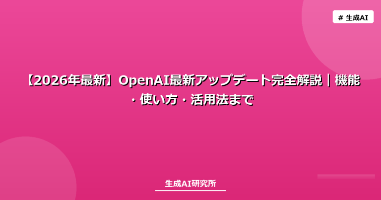 【2026年最新】OpenAI最新アップデート完全解説|新機能の使い方から活用法まで 「OpenAIの最新アップデートが発表されたけど、何が変わったの?」「新機能をどう活用すればいいかわからない」そんな悩みを抱えていませんか? AIの進化は目覚ましく、特にOpenAIは定期的に革新的なアップデートをリリースしています。しかし、情報が多すぎて何が重要なのか、どう活用すればいいのか迷ってしまう方も多い […]